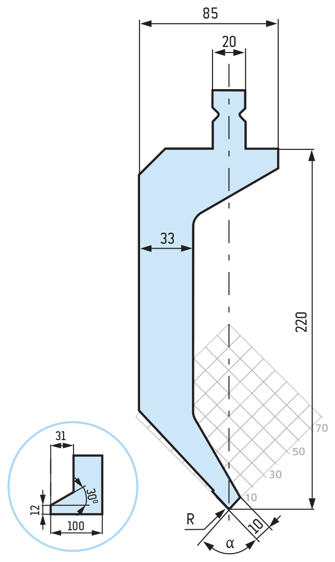 Stemple typu „T” S 2200 80 t/m S 2201 80 t/m S 2200 W 80 t/m S 2201 W 80 t/m S 2202 60 t/m S 2203 130 t/m S 2202 W 60 t/m S 2203 W 130 t/m S 2204 40 t/m S 2204 W 40 t/m S 2300 W 80 t/m S 2280 20 t/m zestaw do zagniatania przykład zastosowania S 2205 i M 2000 stempel z wkładką stempel promieniowy wkładki promieniowe S 220080 t/m α = 86° R = 1 mm S 220180 t/m α = 86° R = 1 mm S 2200 W80 t/m α = 86° R = 1 mm S 2201 W80 t/m α = 86° R = 1 mm S 220260 t/m α = 28° R = 1 mm S 2203130 t/m α = 60° R = 4 mm S 2202 W60 t/m α = 28° R = 1 mm S 2203 W130 t/m α = 60° R = 4 mm S 220440 t/m 130 t/m α = 14° R = 1 mm S 2204 W40 t/m 130 t/m α = 14° R = 1 mm S 2300 W80 t/m α = 86° R = 1 mm S 228020 t/m α = 80° R = 0.5 mm zestaw do zagniatania S 220570 t/m α = 26° A = 8 mm, 10 mm, 12 mm R = 0.6 mmTH = 30 t/m M 200070 t/m A = 8 mm, 10 mm, 12 mm przykład zastosowania S 2205 and M 2000: stempel z wkładką S 2206100 t/m stempel promieniowy S 220780 t/m wkładki promieniowe WKŁADKA R 0.3 – R 6 α = 28° WKŁADKA R 7 – R 12 WKŁADKA R 12.5 – R 50 WKŁADKA R 0.2 – R 1.5 α = 84°, 86°, 90° WKŁADKA PŁASKA S 2208 R 10 – R 25100 t/m S 2208 W R 25 – R 50100 t/m R 10 – 25 R 25 – R 50
